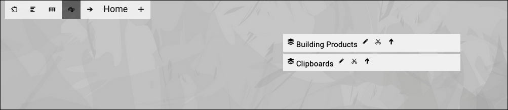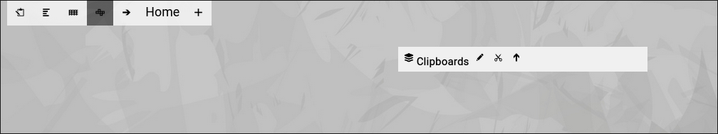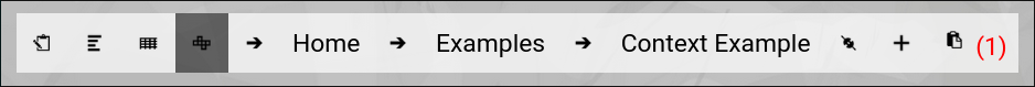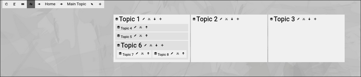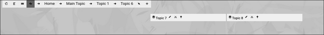 On the left, you will see the so-called "breadcrumb" (starting with four icons); it always shows the full path to the currently focused topic, which is currently the top-most topic called "Home", with a small arrow on the left of it.