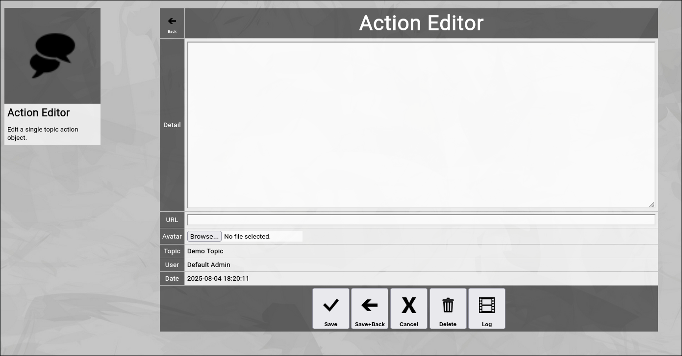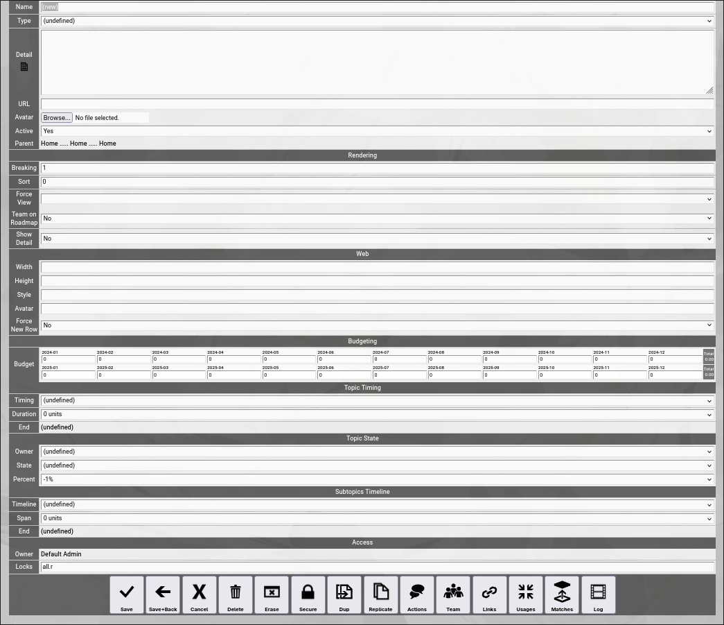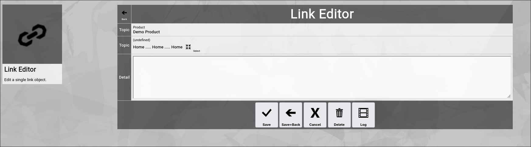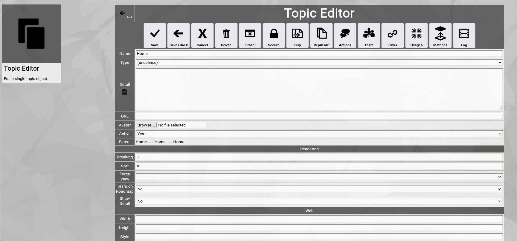 We click the "Add" button in the breadcrumb and we will see the same topic editor screen which we already encountered while editing the "Home" topic, this time showing a newly created topic.