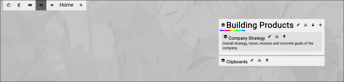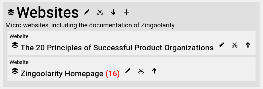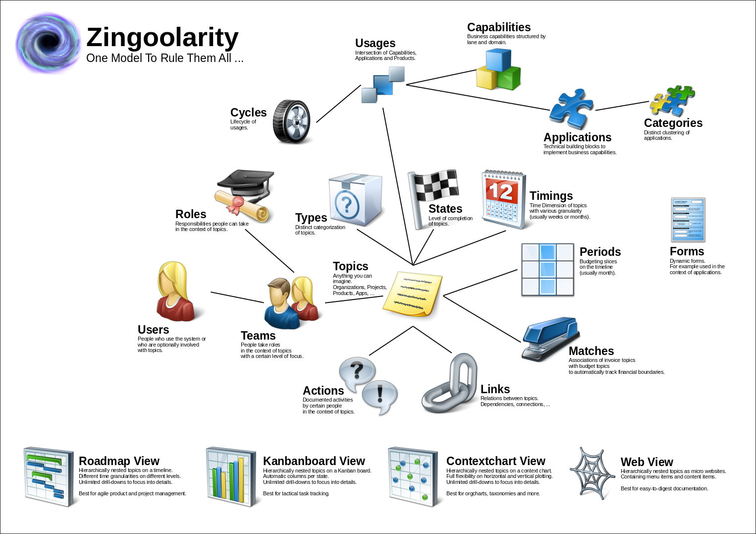 The idea behind this is that when you start using Zingoolarity to model and support your product organization, you create a "landing page" or "home page", which contains all relevant entry points to your information.