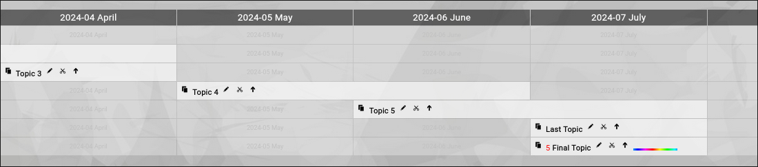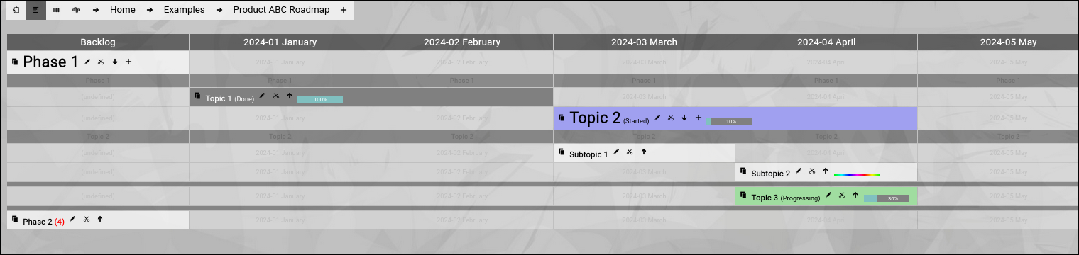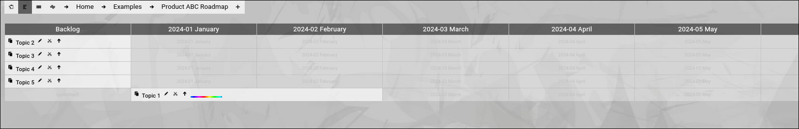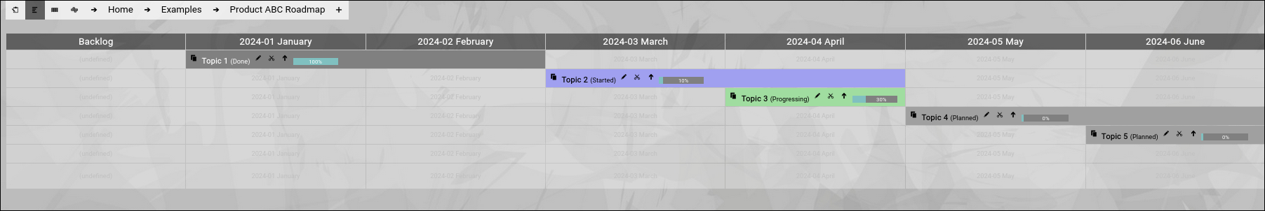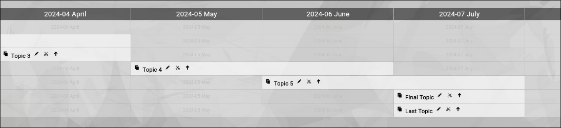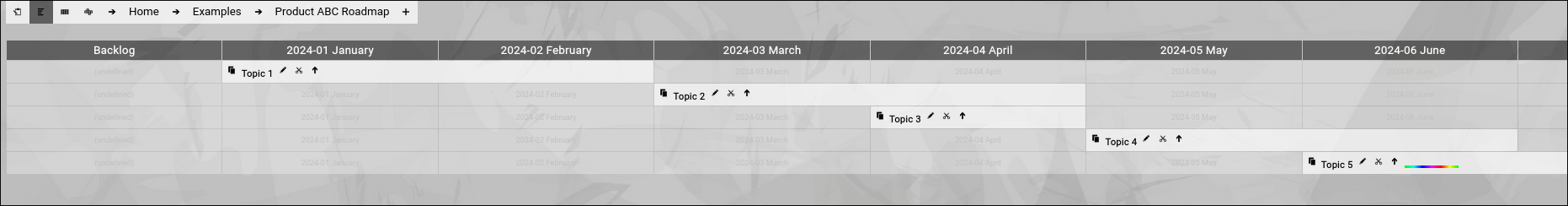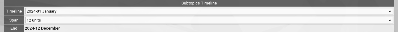 If your roadmap for example has a "Subtopics Timeline” setting of "January 2024” and "12 units”, you can for example set "March 2024” and "May 2024”.