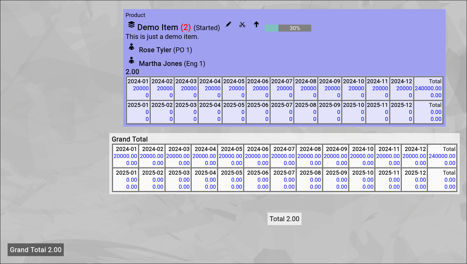 The same goes for budgets; as soon as one topic on the map has a budget, totals will be rendered on every relevant level.